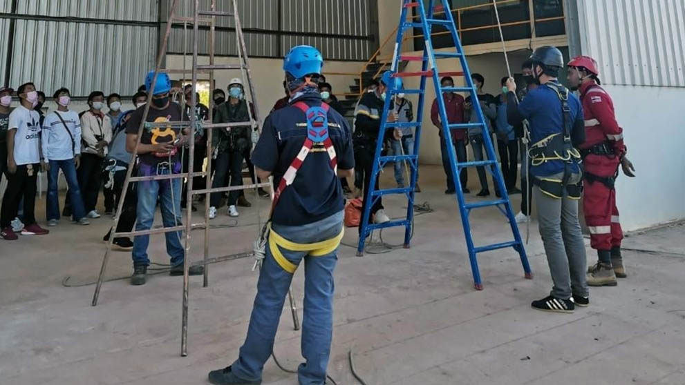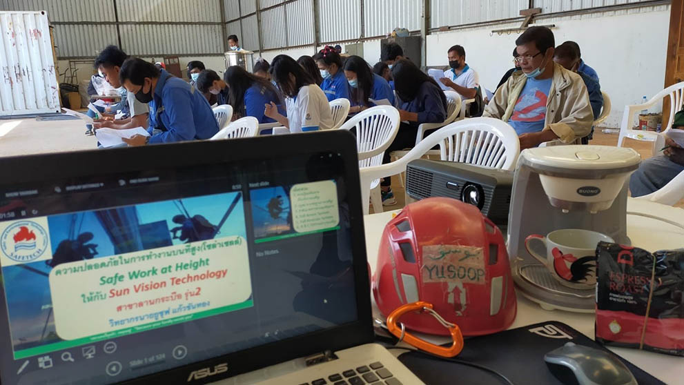 Safety and Environmental Technology Center Co., Ltd. (SAFETECH), a center of safety equipment and providing various services related to safety and environment to domestic organizations. by a team of experts in occupational health safety and environment To create standards in safety for everyone To ensure that every life is safe every day, organize training courses on safety at work at heights Lecturer who gave knowledge to Ajarn Yusuf Kaewkhanthong at Sunvision Technology Co., Ltd. by Mr. Watcharin Inmek, Managing Director Permission to use the training site, No. 114/1, Village No. 2, Lan Krabue Subdistrict Lan Krabue District, Kamphaeng Phet Province